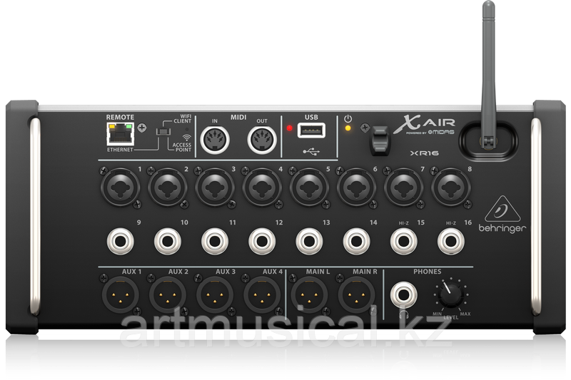 BEHRINGER X AIR XR16 – рэковый цифровой микшерный пульт с наличием 16 входов, 4 aux выходов, 8 фирменных преампов MIDAS и возможностью удаленного управления с помощью устройств iPad/iPhone. Микшер подходит для работы на концертах с живым звуком, а также для студийной работы. Используемые в микшере фирменные предусилители MIDAS максимально оптимизированы по своим свойствам для согласованной работы с интегрированным DSP процессором. Они соответствуют по уровню и обеспечивают точность и прозрачность в звуке.