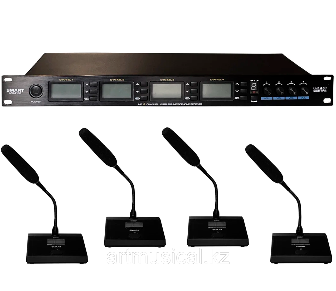 Комплект из 4 штук беспроводных микрофонов для конференций, Smart MX4100.