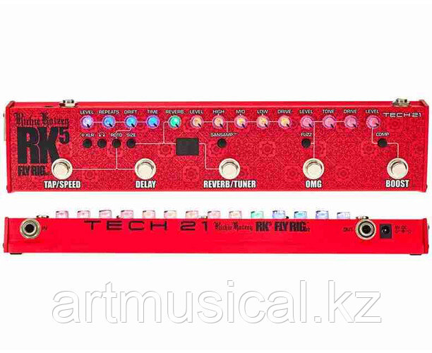 TECH 21 Richie Kotzen Signature Fly Rig V3 – компактный гитарный процессор, разработанный совместно с Ричи Котценом для профессиональной работы на сцене и в студии. Аналоговая технология SansAmp эмулирует полный сигнальный тракт – преамп, усилитель и кабинет – с возможностью добавления овердрайва через Drive и OMG-секцию. OMG Overdrive, основанный на именной педали Котцена, обеспечивает диапазон от чистого до агрессивного звучания, а переключатель Fuzz делает тон плотнее и насыщеннее.Эффекты включают реверберацию с выбором объёма имитации помещения, дилей с tap tempo и функцией Roto, а также встроенный хроматический тюнер. Цепочка подключения внешних эффектов и три выхода (XLR, обработанный 1/4" и необработанный 1/4") дают гибкость подключения к микшерам и усилителям, а режим наушников позволяет контролировать звук без внешних устройств. Прочный алюминиевый корпус, бесшумные футсвичи и фантомное питание для RK Killer Wail wah делают процессор удобным для гастролей.TECH 21 RK5 V3 – решение для гитаристов, ценящих фирменное звучание Ричи Котцена, компактность и профессиональную функциональность.ТОО "Самат шоу техник" – эксклюзивный дистрибьютор бренда TECH 21 на территории РК.